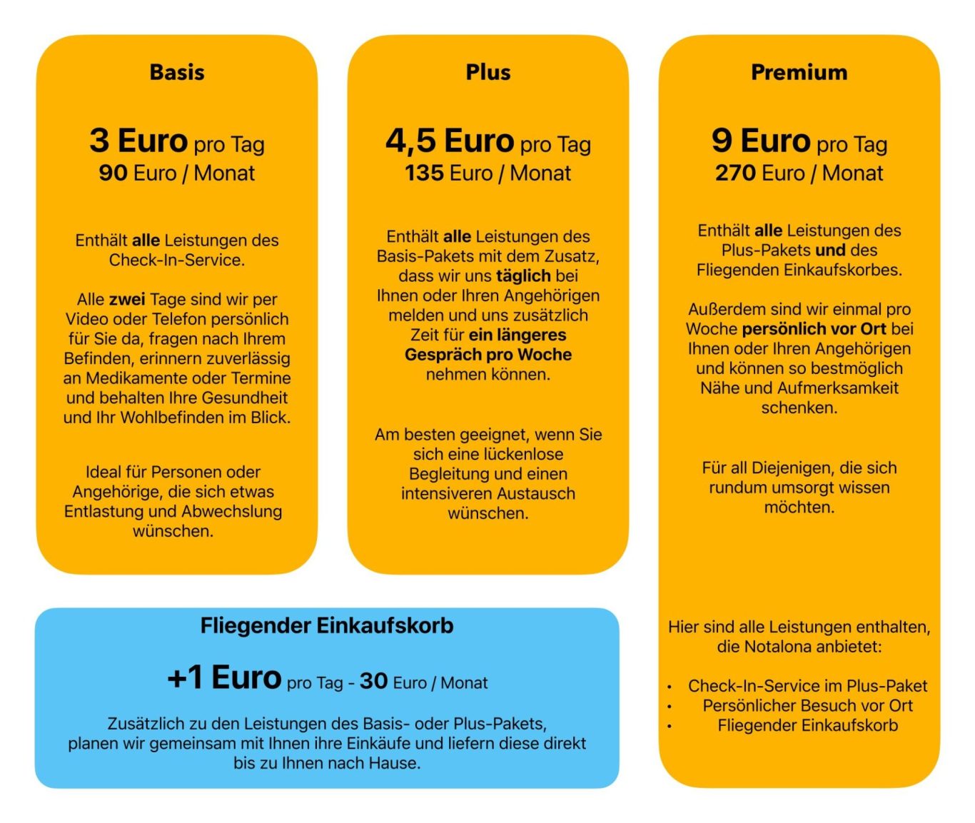 Sollte keine Kündigung erfolgen, welche jederzeit über alle Wege (Telefon, Mail, Post oder persönlich) möglich ist, wird das gewählte Leistungspaket um jeweils einen Monat verlängert. Die Pakete stellen eine Empfehlung dar und können je nach Bedarf individuell angepasst werden.